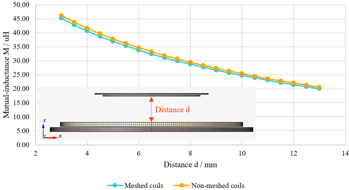 After solving the scenario, SimLab can provide some basic post-processing for the EM analysis, including the mutual-inductance calculation. As shown below, the mutual-inductance values under the two coil modeling methods are very close.