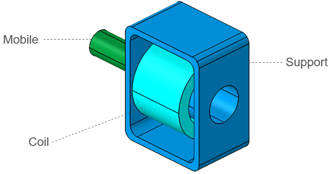 | 3D Magneto Static | Linear Actuator | The studied device is obtained from an import, it is a linear actuator with a coil, a mobile and a fixed part. | ![]() |