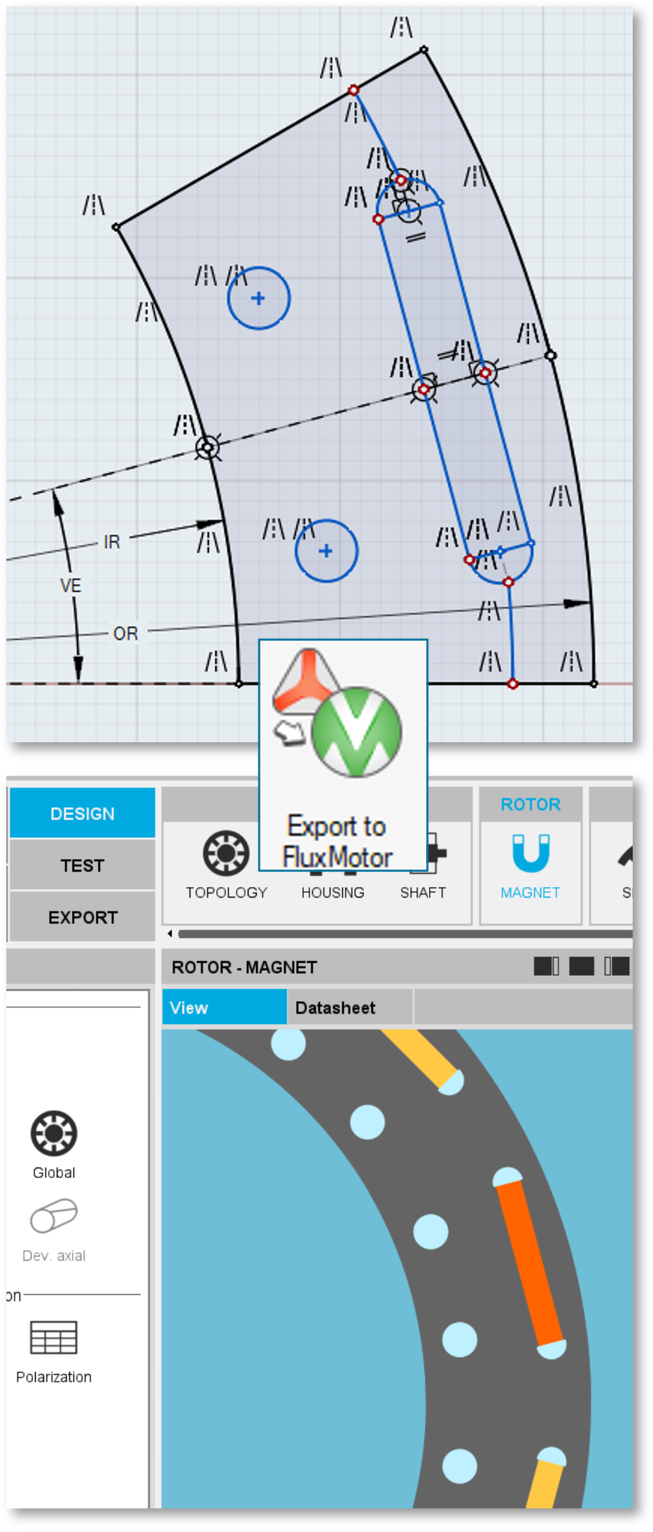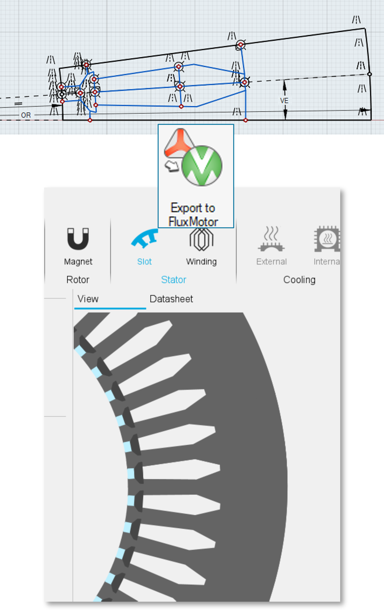 sketcher and then use it in FluxMotor by following these steps: