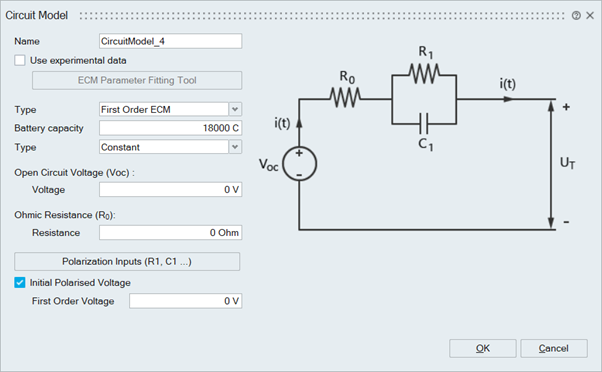 - Use Battery Model tool to define the Equivalent Circuit Model (ECM) parameters.