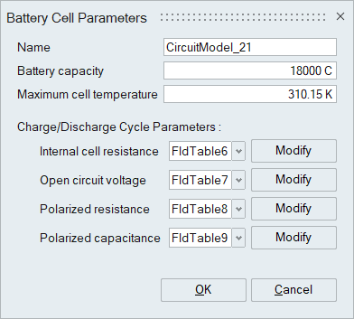 Battery model can be used to define the parameters required to construct an ECM. The Electric conduction workflow in SimLab currently supports first order ECM to model the battery cells.