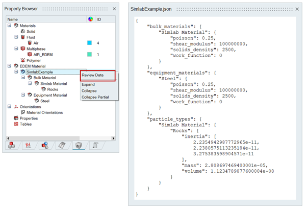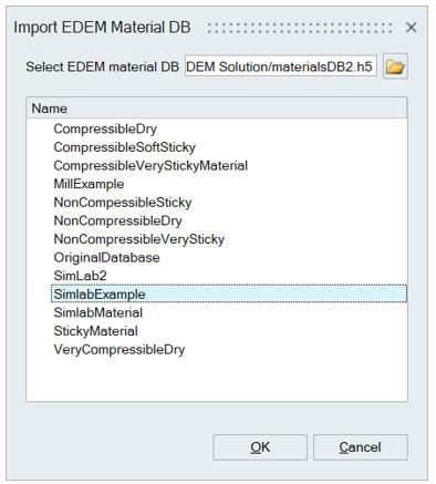 - Material Browser | Right click on Materials | Import EDEM Material DB will open the panel to select the material from material database.