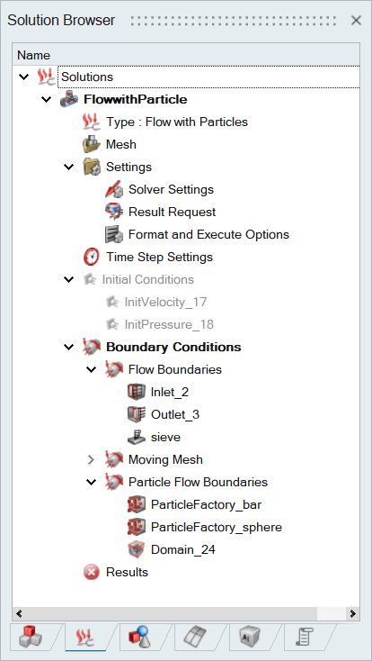 - Create Flow with Particles Solution by using Solution > Flow > Flow with Particles.