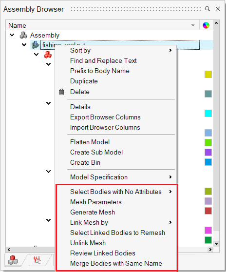 The following options are available for Right click on Model/Sub-Model/Body.