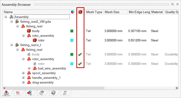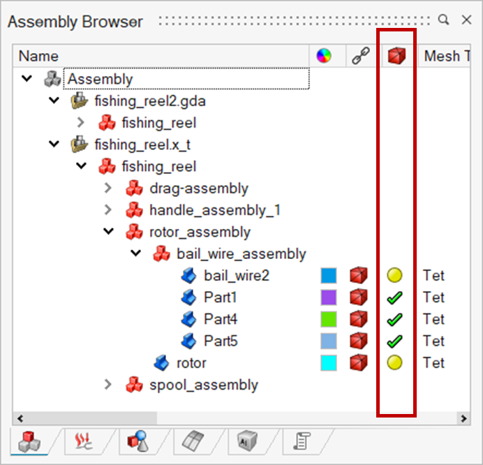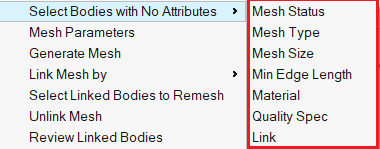 This option is used to do a quick check for the bodies that do not have assigned with the required mesh parameters. In the case of mesh status, CAD bodies that do not have associated mesh bodies will get identified.