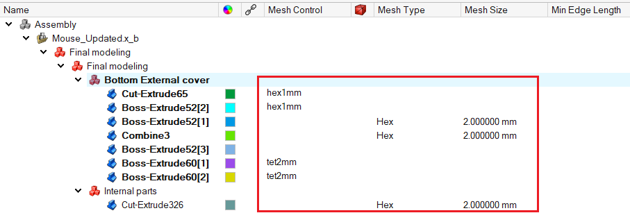 - Solid - If possible Hex mesh, otherwise Tetra mesh.