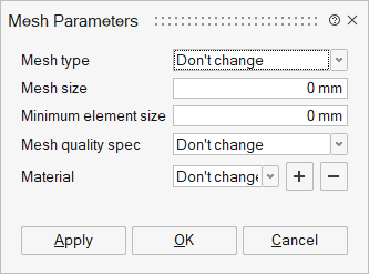 It is not mandatory to give all the parameters. The set/edited parameters alone get assigned or updated to the selected bodies. For example, if the user provides only the mesh type and size, these parameters get set to the bodies, and the rest get skipped.