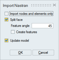 - The Import nodes and elements only option is used the import only the model data. The various loads, constraints, connection and subcase data will be ignored during import.