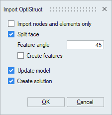 • The Import nodes and elements only option is used the import only the model data. The various loads, constraints, connection and subcase data will be ignored during import.