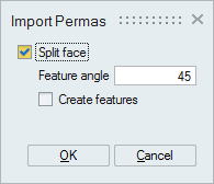- The Split face option is used to break faces of the imported bodies using the specified feature angle. Elements will be grouped based on that angle and face will be created for the grouped elements.