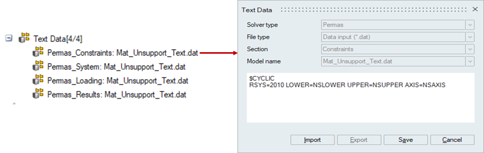 On import of solver deck the unsupported cards in $CONSTRAINTS, $SYSTEM, $LOADING, $RESULTS and $MATERIAL section are stored in the form of text.