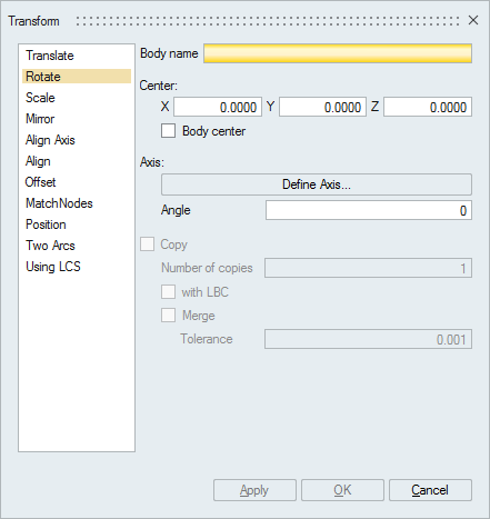 CopySelect this toggle to take a copy of input body. A new body will be created.