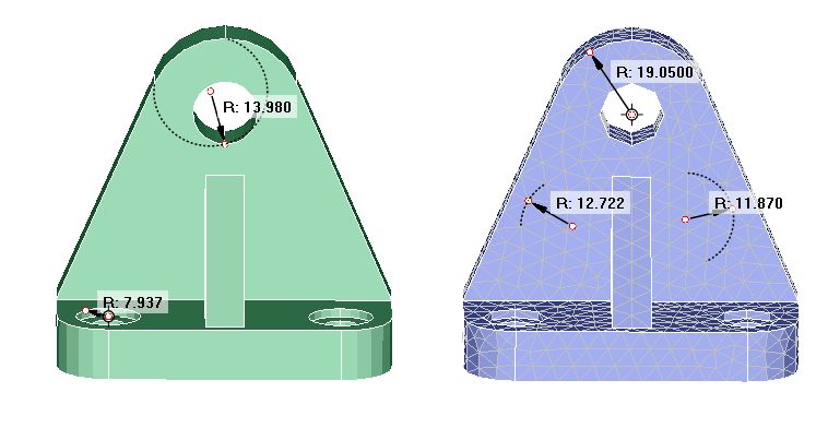 - Face: To find the radius of the cylindrical and conical faces.