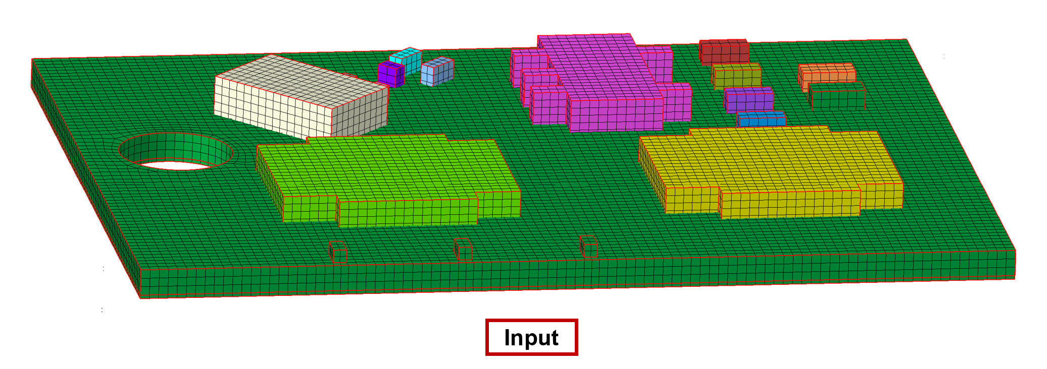 During face pair selection, the body associated with the selected cell is displayed in transparent mode, while the corresponding faces are highlighted using their designated group colors.