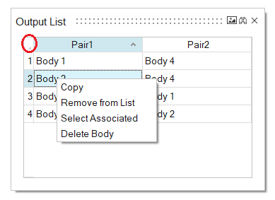 Select Associated: Selects all the associated body pairs for the selected cell item.