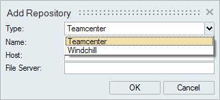 3. For Type, select Teamcenter or Windchill.