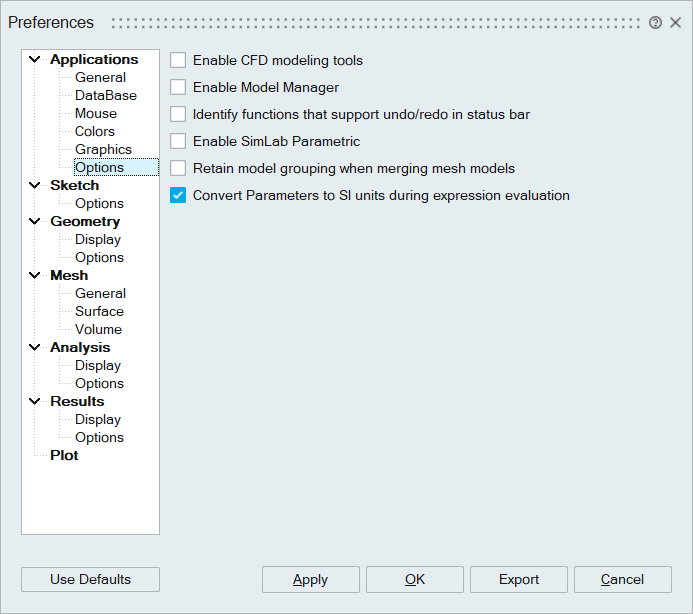 If this toggle is ON, the expression parser converts all parameter values to SI units before evaluation.