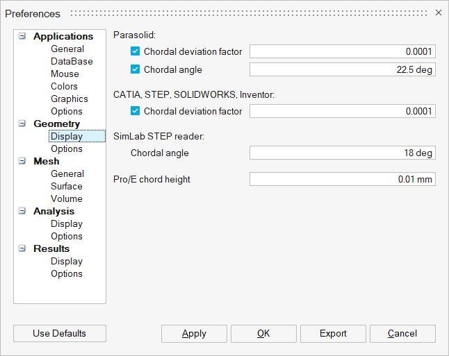 CAD model types are as follows.ParasolidDefault chordal deviation factor
