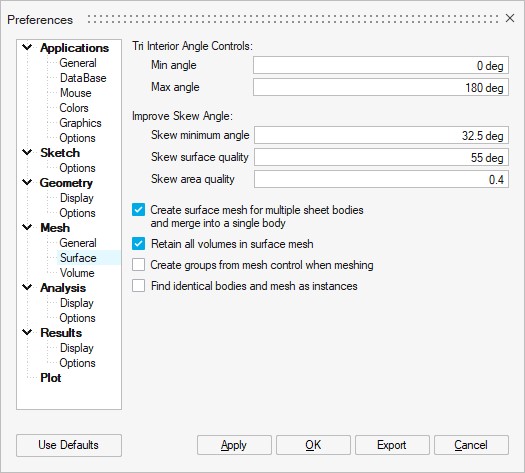 Skew surface quality: Defines the skew surface quality required in meshing.