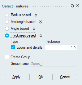 This option is used to identify the features based on the thickness.