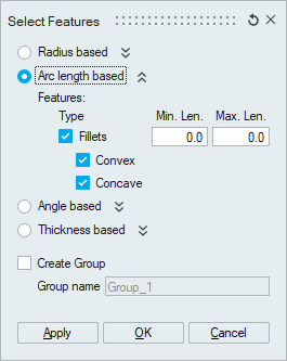 This option is used to identify the features based on its arc lengths.