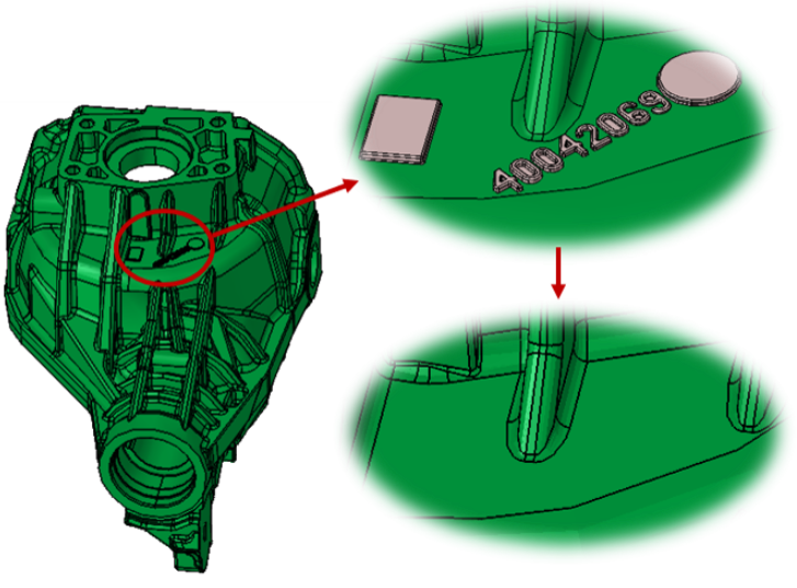 To identify the logo/numbers/names/unwanted details in a body for the given thickness.