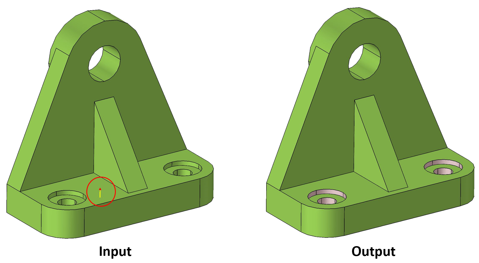Bolt hole may consists of cylindrical faces with different radius, conical faces and hollow disc faces. This option will select all the faces in the bolt hole(through / blind) automatically. Blind holes can also be identified based on its depth.