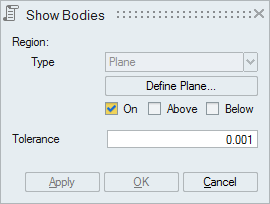 "Below" option displays the faces that are lying below the plane (d > Tol).