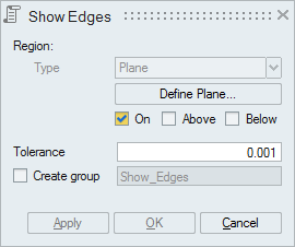"Below" option displays the edges that are lying below the plane (d > Tol).