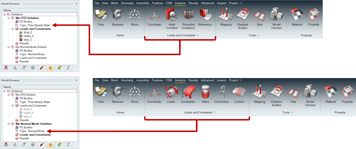 - On creating solution only valid loads and boundary conditions will be displayed