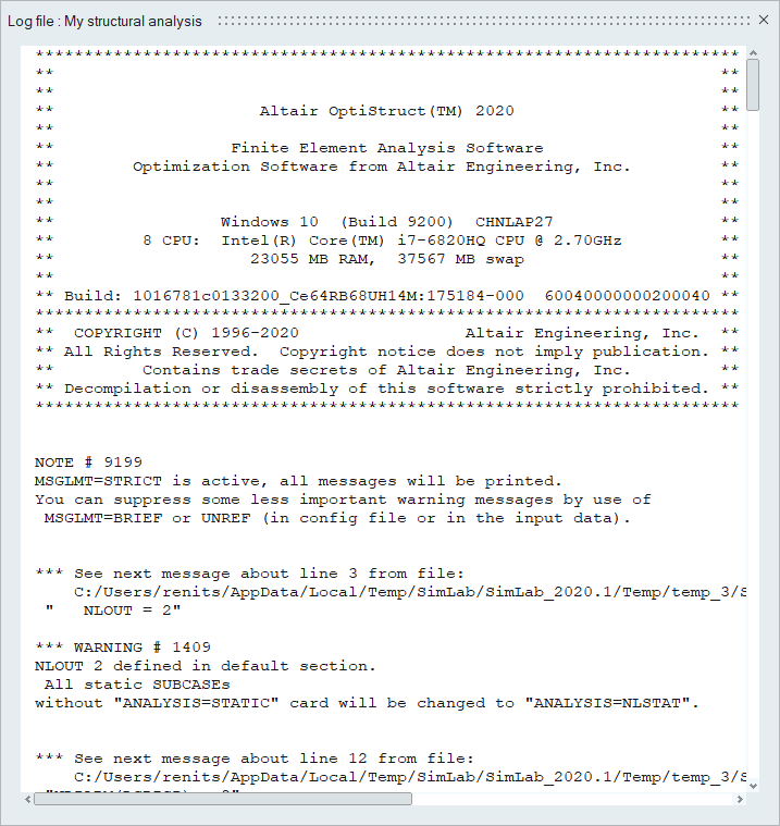 - View Solver Log can be used when background solve is in progress and also for completed solutions.