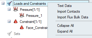 Right click on Loads and Constraints in Loads and Constraints browser to open Text data editor.