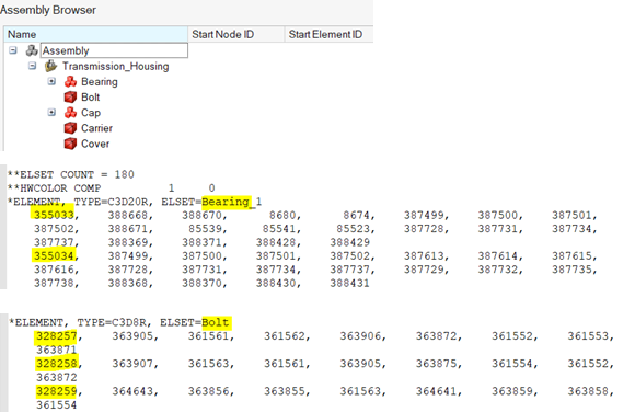 Solver input file exported without setting the desired Start Node / Element IDs in the browser columns: