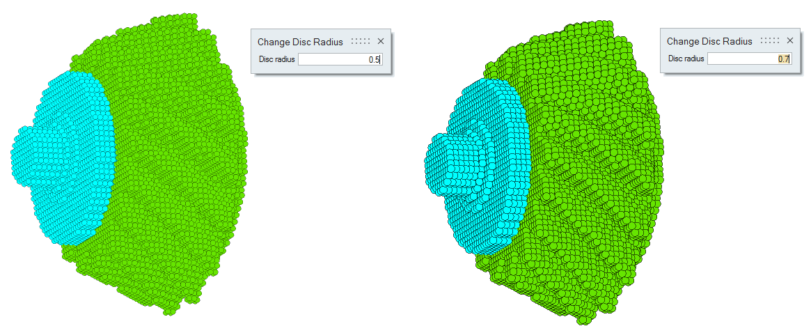 It is used to change the disc radius. Radius is half of the spacing between the particles.