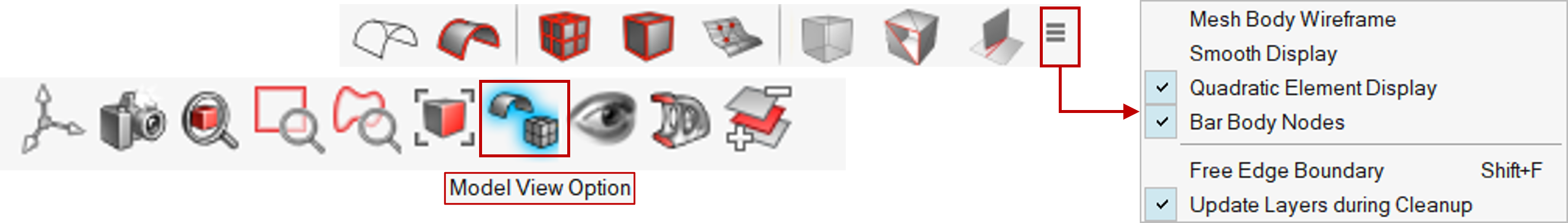 Mesh Body Wireframe: It displays only the face and element edges of the model.