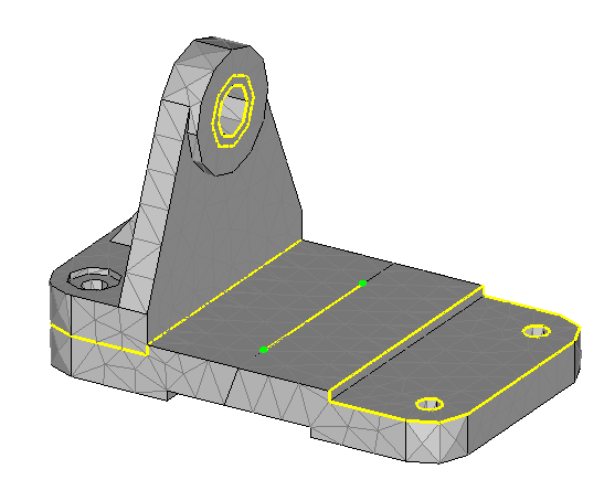 This option will display the Non-manifold Edges for visible bodies. The Non-manifold Edges will update automatically for all cleanup operations in which topological edges are updated. Non-Manifold Edges are highlighted in yellow color. By default, bodies are displayed in grey color, option in User Interface -> Right click -> Display in Body Color will display in body color. The default color settings for element edge is Grey color and Geometry edge is black color. The color settings can be changed from Preference dialog. Element non manifold edges display enhanced to see floating non manifold edges with bubbles in Render Mode > Edge Display > Element Non-manifold edge.