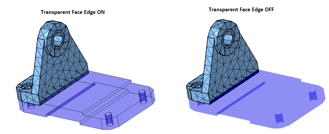 This option displays the face edges of the transparent bodies. Turn OFF this toggle hides the face edges of the transparent bodies.