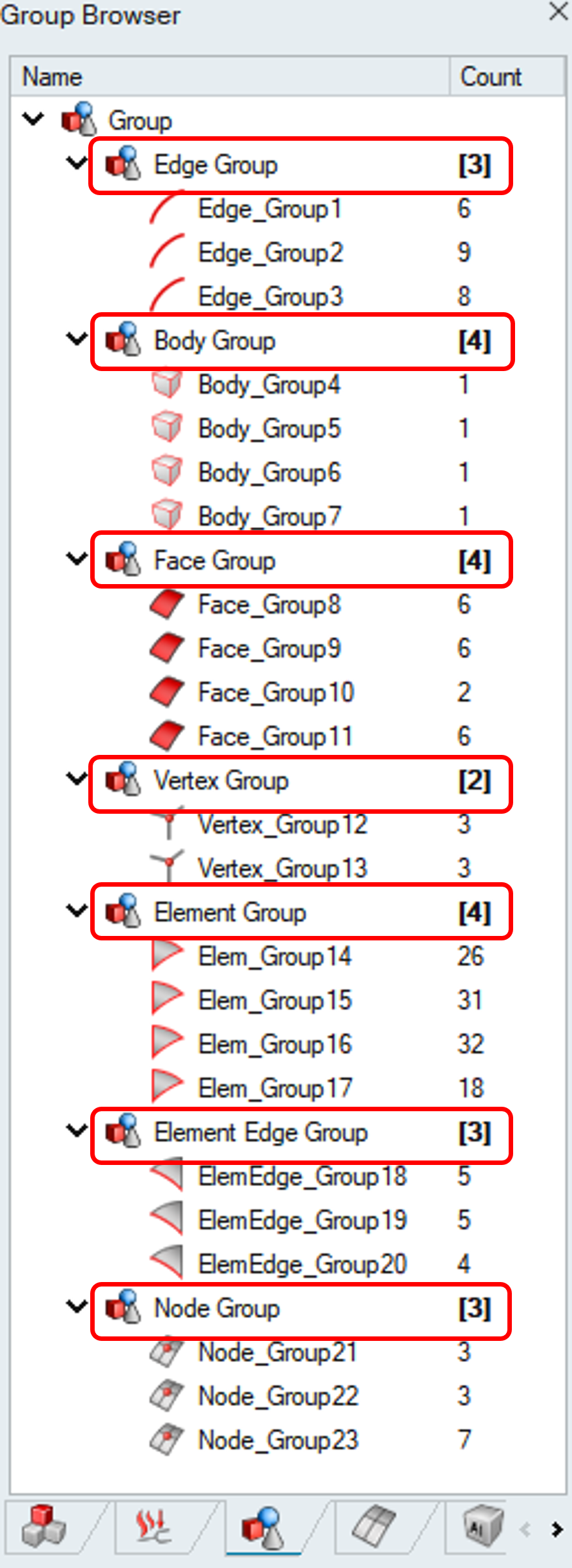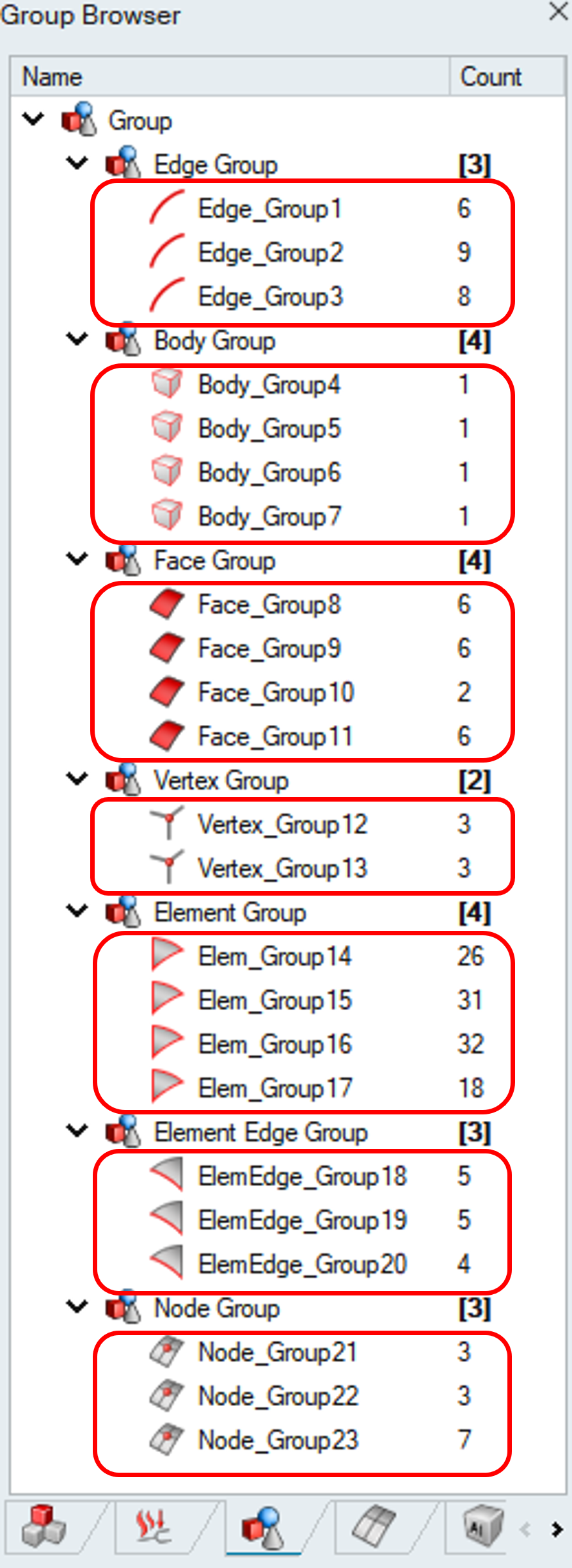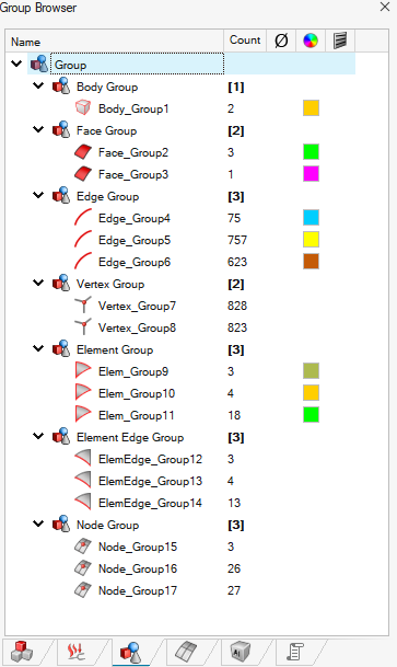 It displays the groups based on the entity type. Successive click on the group will add/remove that group in selection in group color mode.