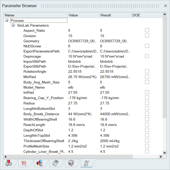• Right click on "SimLab Parameters" allows to create and import parameters using Parameter Manager.