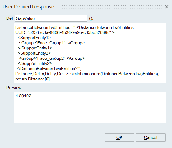 The below script calculates the distance between two plates as a response.