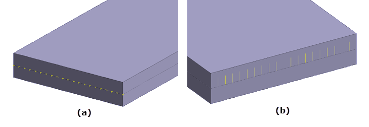 Hinged supports are simulated by applying immovable edge constraint at contact