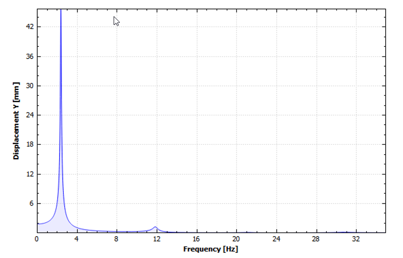 Y-displacement amplitude in picked point with coordinates [m] X = 4.9469, Y = 0.05.,