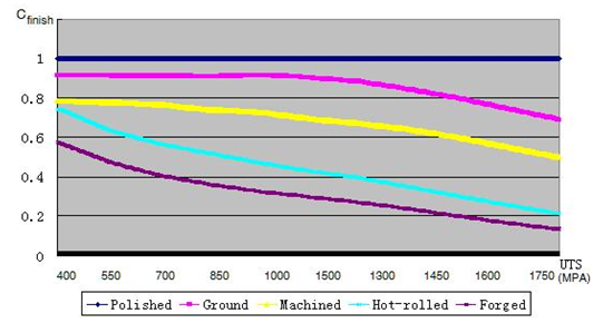 処理タイプがSHOT-PEENEDまたはCOLD-ROLLEDの場合、総補正係数Csurは1.0です。この場合は表面仕上げによる効果を無視できます。