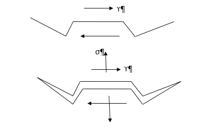 これらの観測事実から次のモデルが導かれます。このモデルは、亀裂の閉鎖効果を伴う法線応力によって変更した繰り返しせん断ひずみと解釈できます。