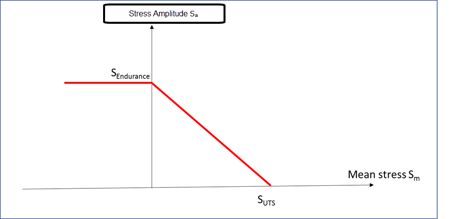 Goodman法では、平均応力によって必ず疲労破壊が促進されるように正の平均応力補正が扱われます。一方で負の平均応力は無視されます。この方法では、圧縮平均応力に対しては控え目な結果が得られます。