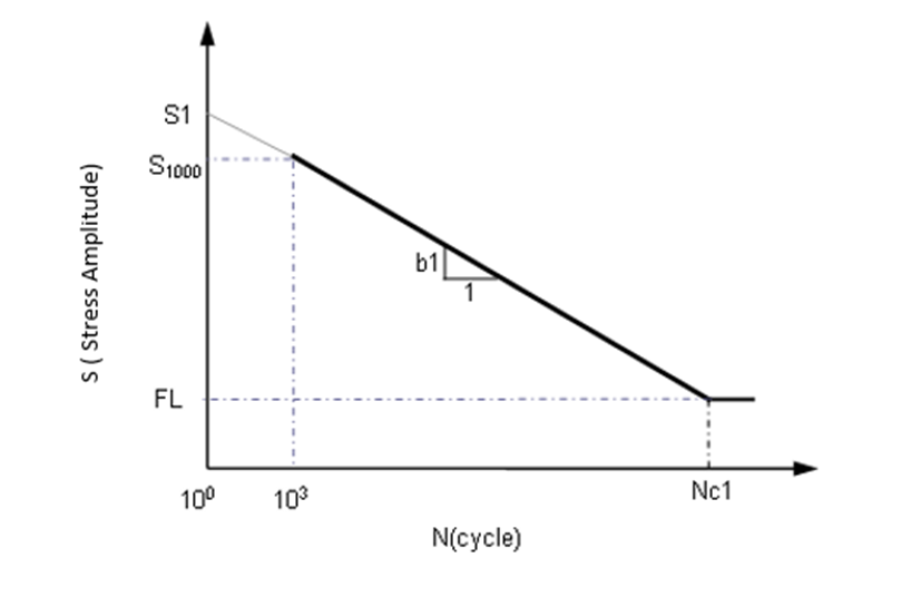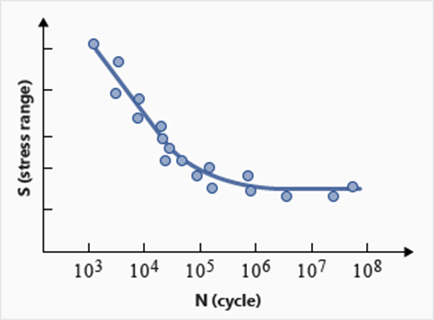 このようなパラメータを把握するために、SN曲線の例を考察します。周期的に変化する公称応力振幅S
