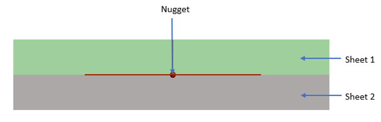 現在のところ、応力寿命(SN)に基づくスポット溶接疲労の解析のみがサポートされています。スポット溶接位置は、シート1、シート2、ナゲットの3つの属性で定義します。