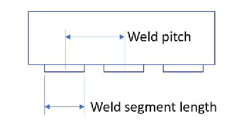 注: 断続的な溶接には、2つのパラメータとして溶接ピッチと溶接セグメント長が必要です。溶接ピッチは、溶接セグメント長よりも長くする必要があります。