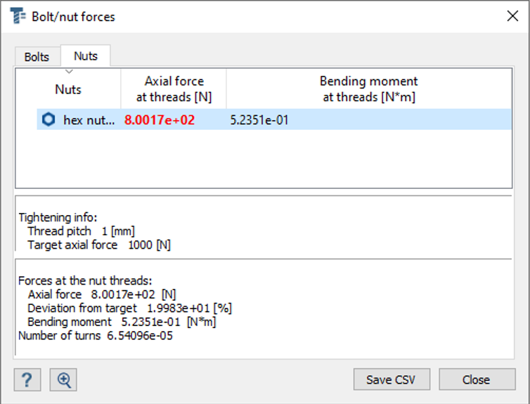 - ボルト/ナットに働く力ダイアログでは、偏差の大きいナットが赤で表示され、目標からの偏差が一覧表示されます。