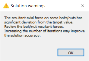 注: ナットの軸合力が10%以上逸れると、以下が発生します:- プロジェクトツリーで、結果ブランチの横に警告アイコンが表示されます。結果を右クリックし、警告を選択して表示します。
